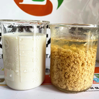 綠森環(huán)保技術(shù)團(tuán)隊?wèi)?yīng)某化妝品客戶要求上門技術(shù)服務(wù),現(xiàn)場給客戶廢水破乳劑中試。客戶廢水:沐浴露廢水,特點(diǎn):含有乳化劑、增稠劑、抗氧化劑、防腐殺菌劑和香精色素等,廢水顏色:淺黃色。使用破乳劑破乳后廢水上清液清澈透明,如下圖       &nbs···